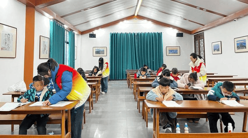 在烟店镇碧山社区,一间宽敞明亮的“社区教室”映入眼帘,一群孩子正在认真书写,几位身着红马甲的志愿者老师正俯身为他们耐心辅导功课。这个寒假,安陆市烟店镇联合碧山社区新时代文明实践站组织开展了“爱心托管班”,聚焦留守、困难家庭儿童,着力解决未成年人“看护难”问题。托管班精心设置了课业辅导、安全教育、防溺水宣传等实用课程,并结合阅读、棋类、手工、体育等多样化活动,全面促进孩子身心发展。开班当日,社区还为部分留守儿童赠送了学习用品,传递新春温暖。值得一提的是,吴婷、蔡梦媛两位幼儿园教师主动加入,利用她们的专业特长耐心辅导孩子,成为了一道靓丽的志愿风景。