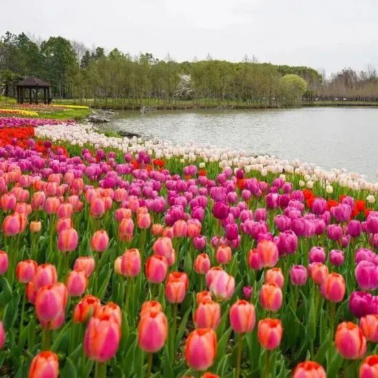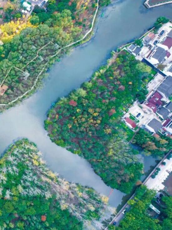 其中,由退渔还水改造而成的桃花岛堪称点睛之笔,环岛栽植的垂枝、龙柱等五种碧桃错落有致,春日花开时如云霞漫卷。
